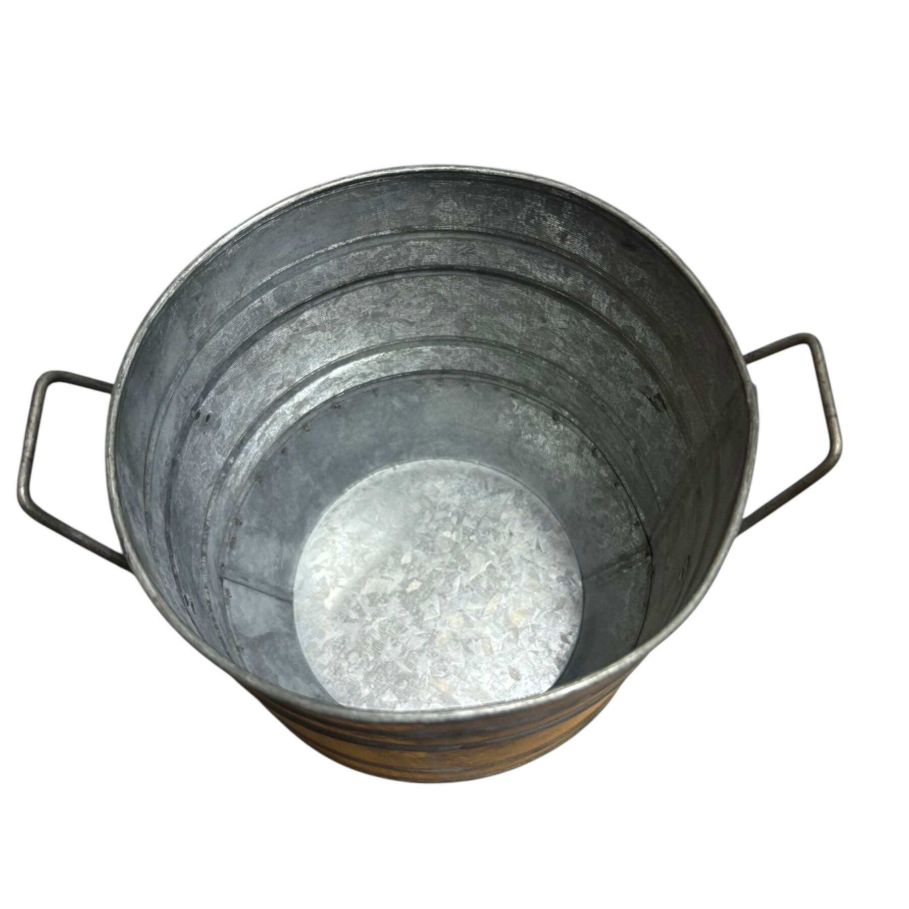 ブリキの鉢カバーで、シンプルながらもスタイリッシュかつビンテージな雰囲気が魅力的です。