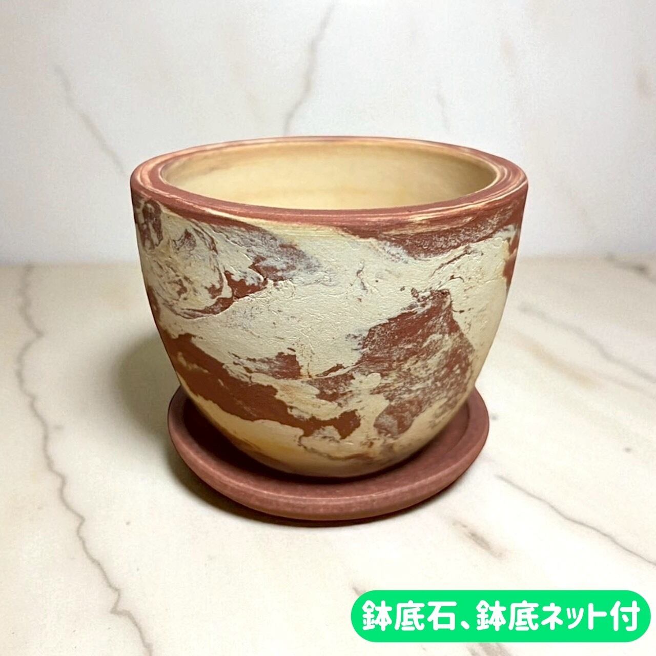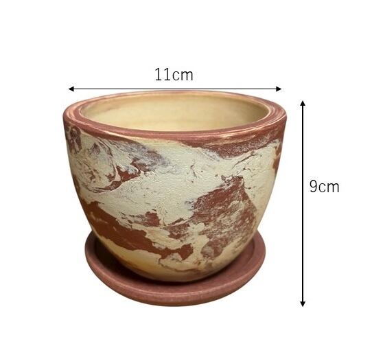 赤色と白色が混ざりあったようなグラデーションが可愛いデザインの陶器製植木鉢を入荷しました。