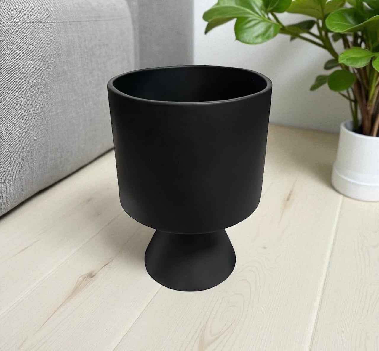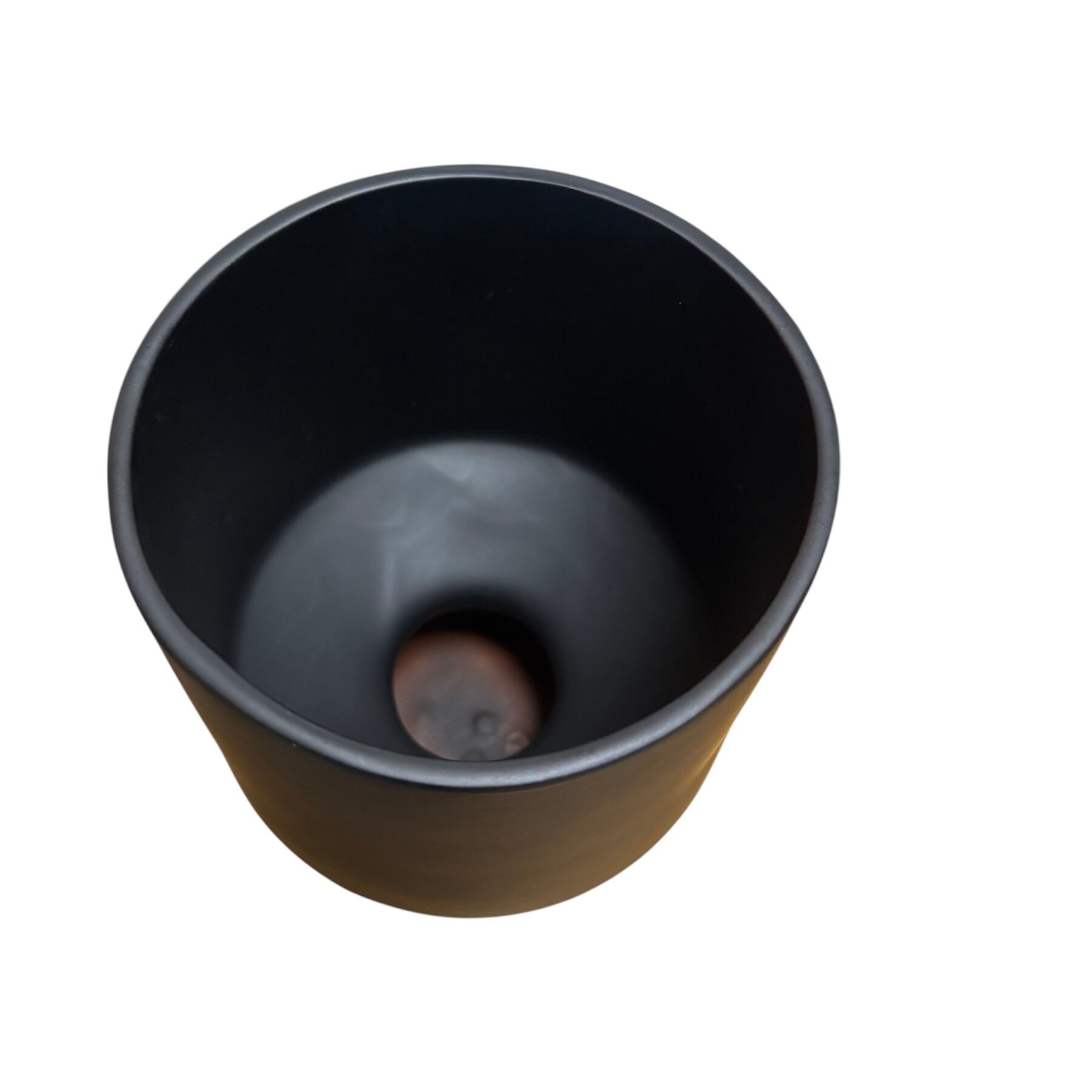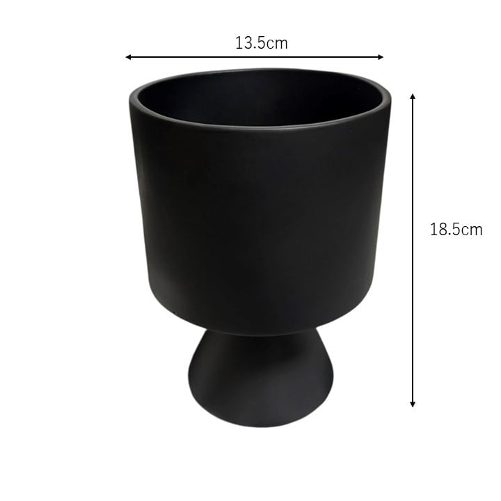 マットな黒色が落ち着いた雰囲気のある陶器製植木鉢です。