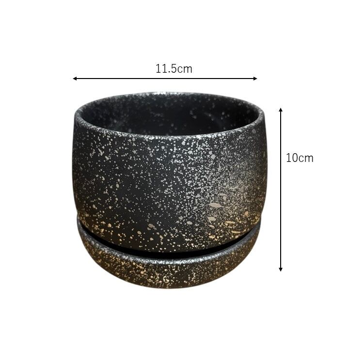黒色の陶器鉢にシルバーの塗装を施した