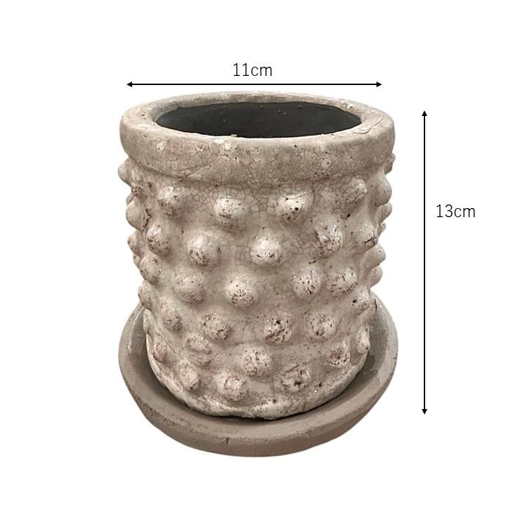 おしゃれなトゲトゲデザインが魅力的な白色の陶器製植木鉢です。