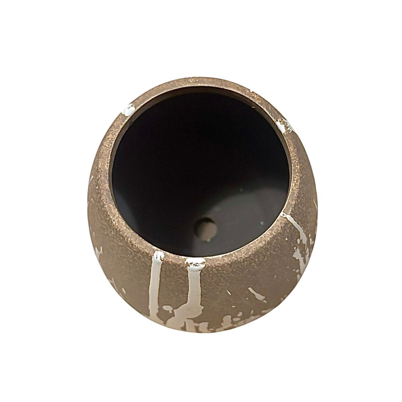 茶色の植木鉢に白色のの模様が入ったツートンの陶器製植木鉢です。