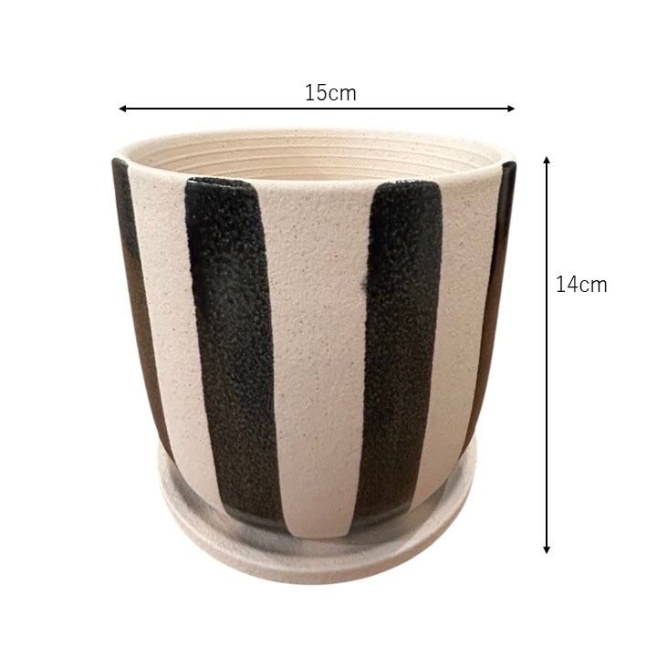 シンプルな中に個性が光る、ストライプ柄の陶器製植木鉢です。