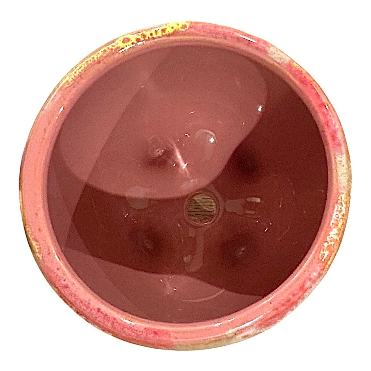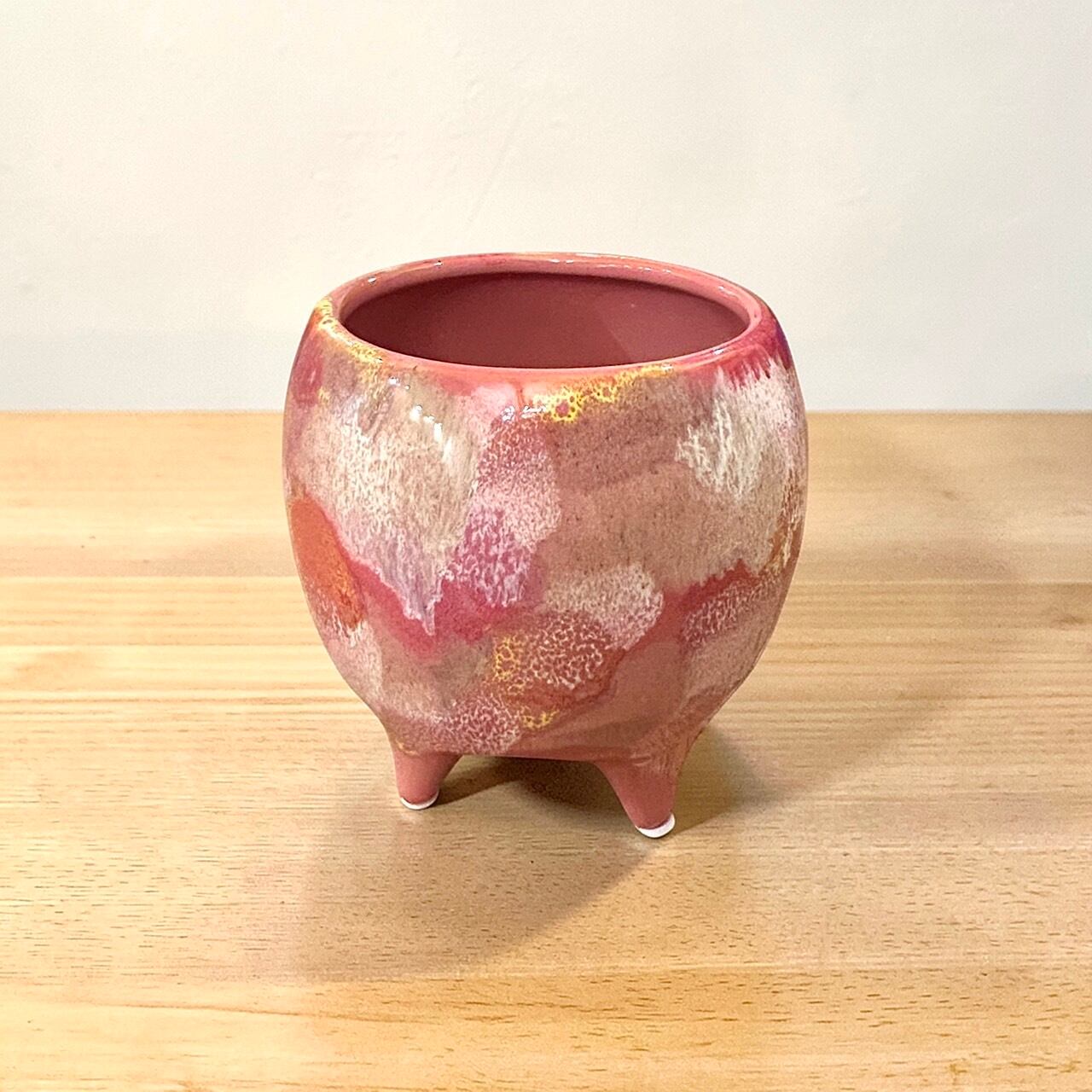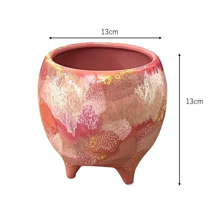 淡いピンクのやさしい色合いが魅力の、陶器製の植木鉢。