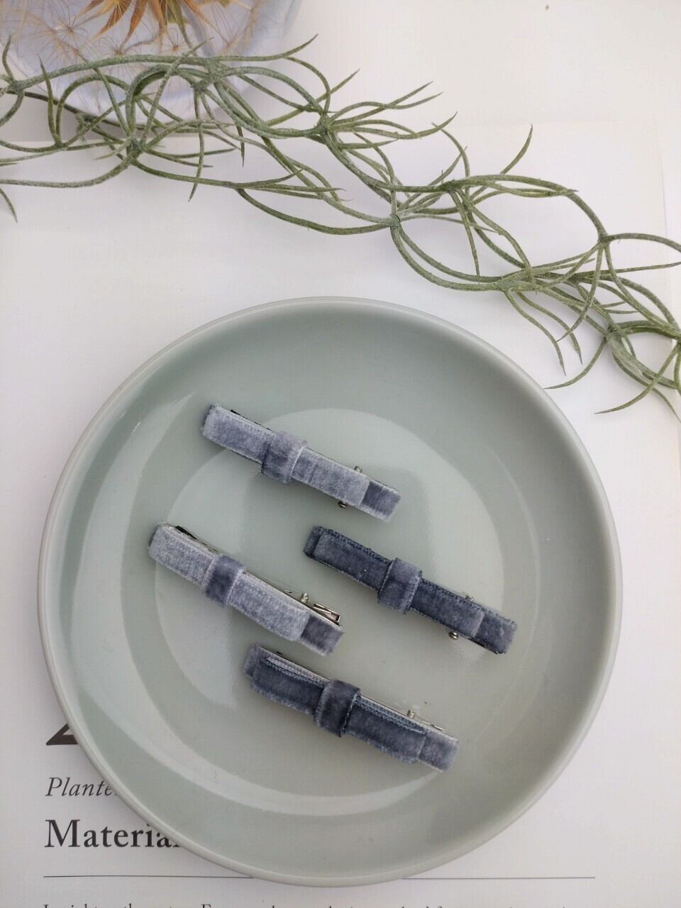 ミニサイズのベルベットリボンピンです。