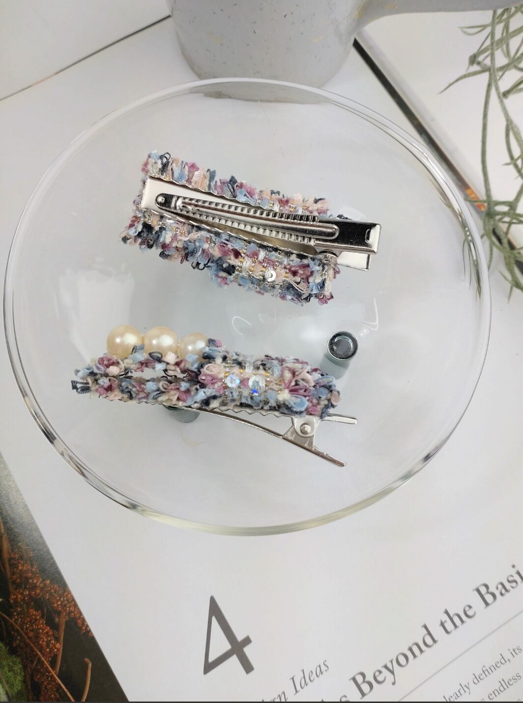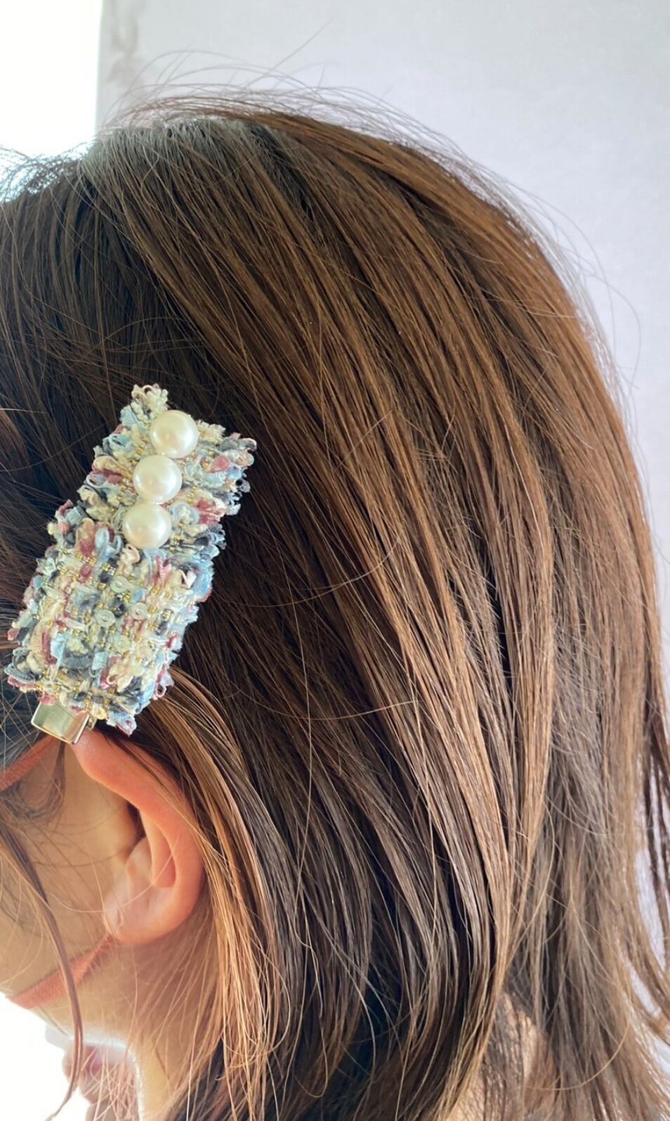 ♡ツイード生地にパールビーズがついた可愛いピンです♪