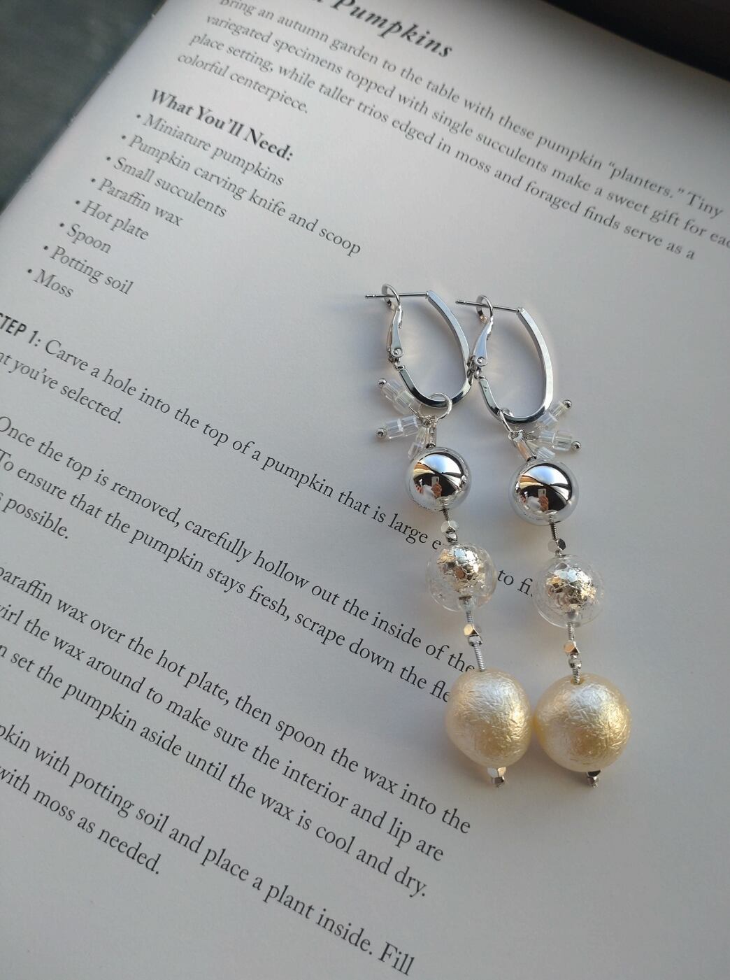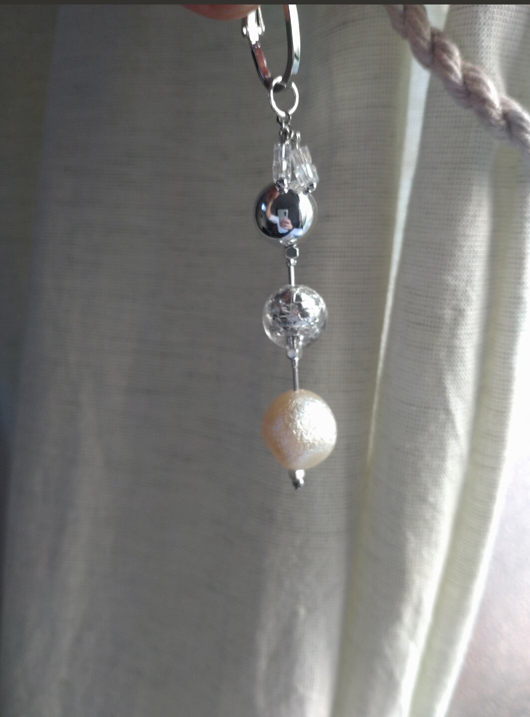 コットンパール風ビーズにホイル入りビーズ、さらにメタルビーズを合わせたまん丸可愛いピアスです♡
