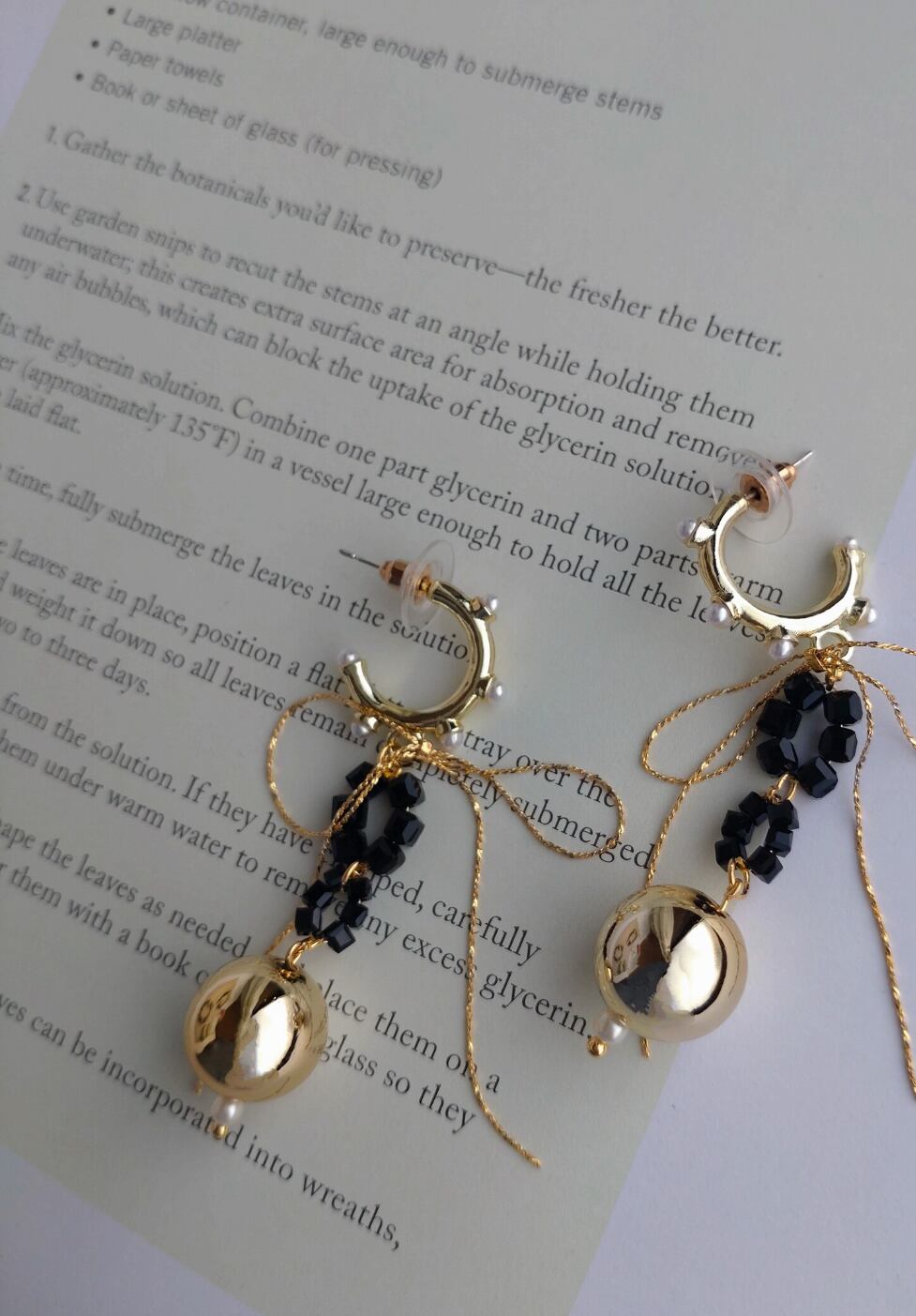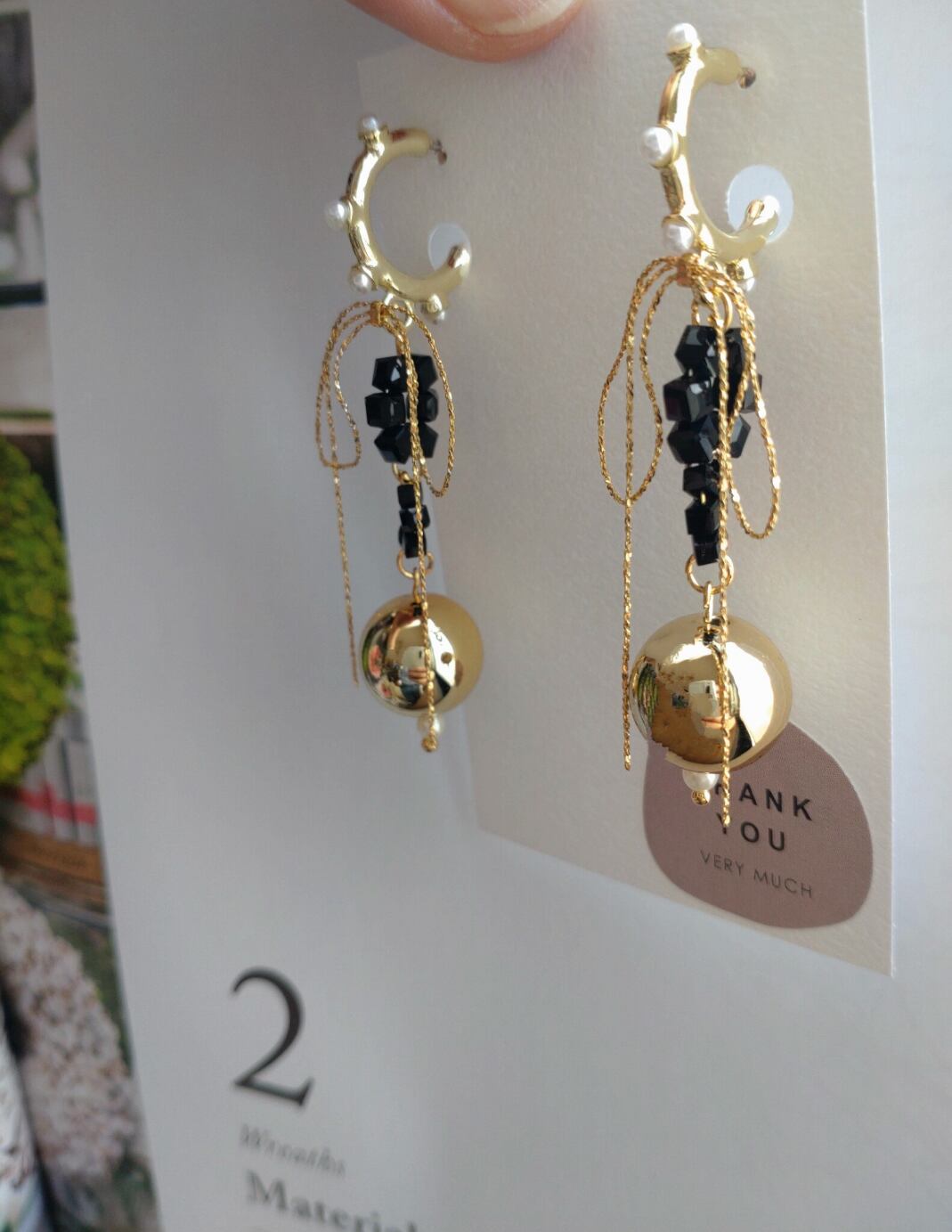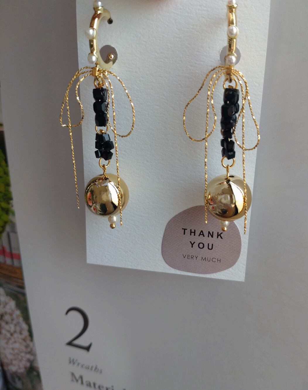そこにブラックガラスビーズとまん丸ゴールドビーズで作ったチャームを合わせました♪