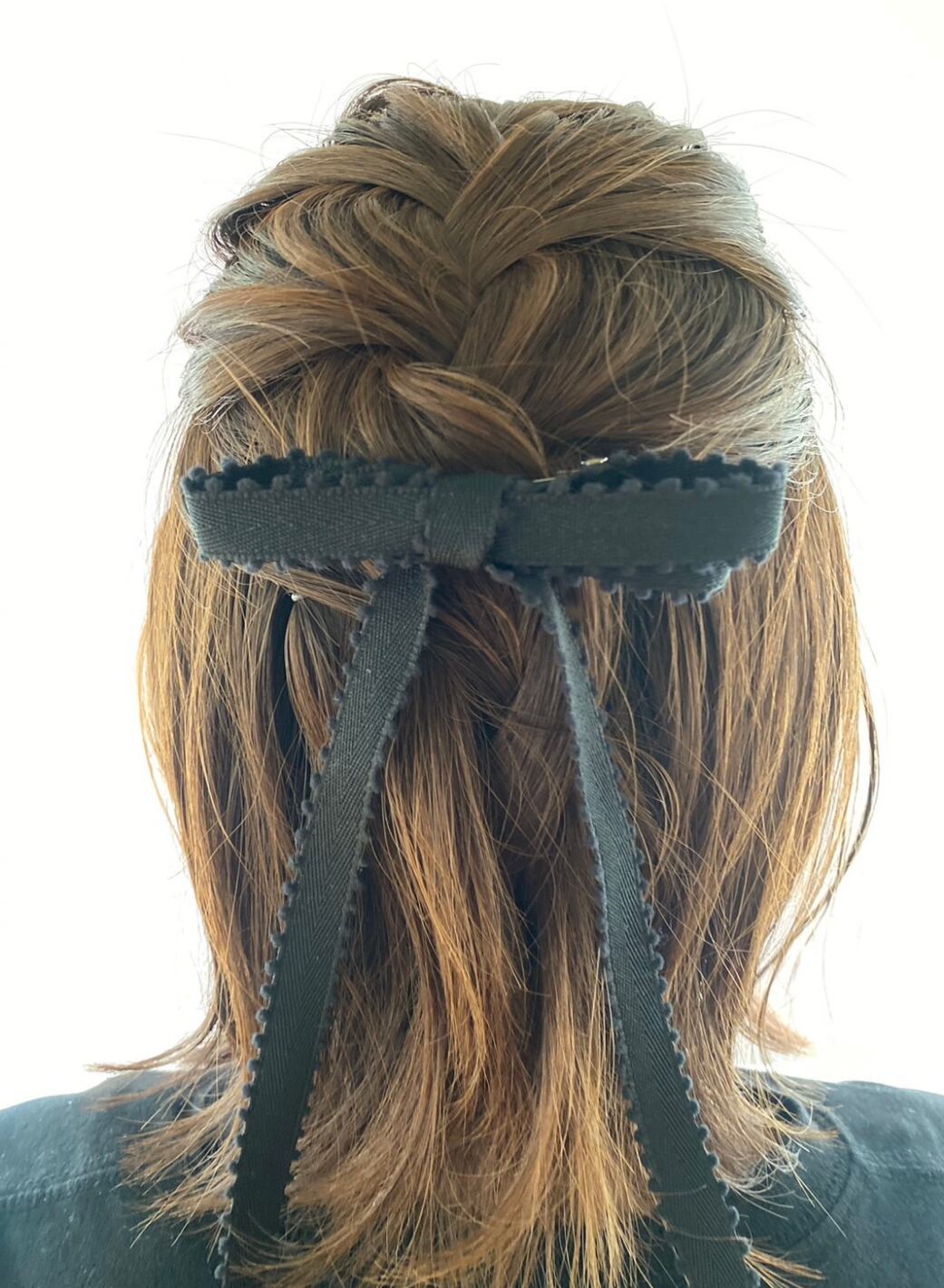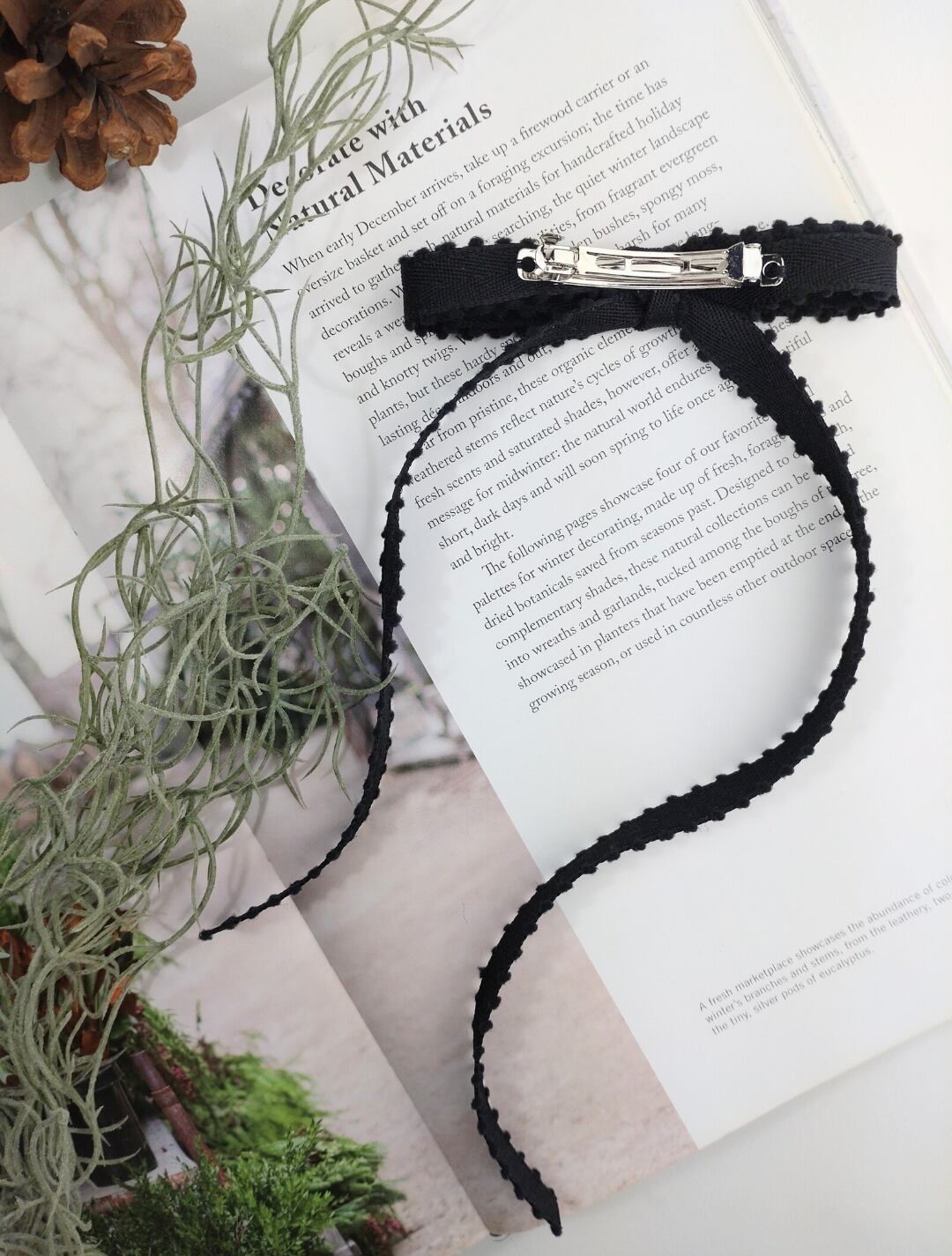 ♡フチに小さなポンポンが付いたリボンバレッタです♪