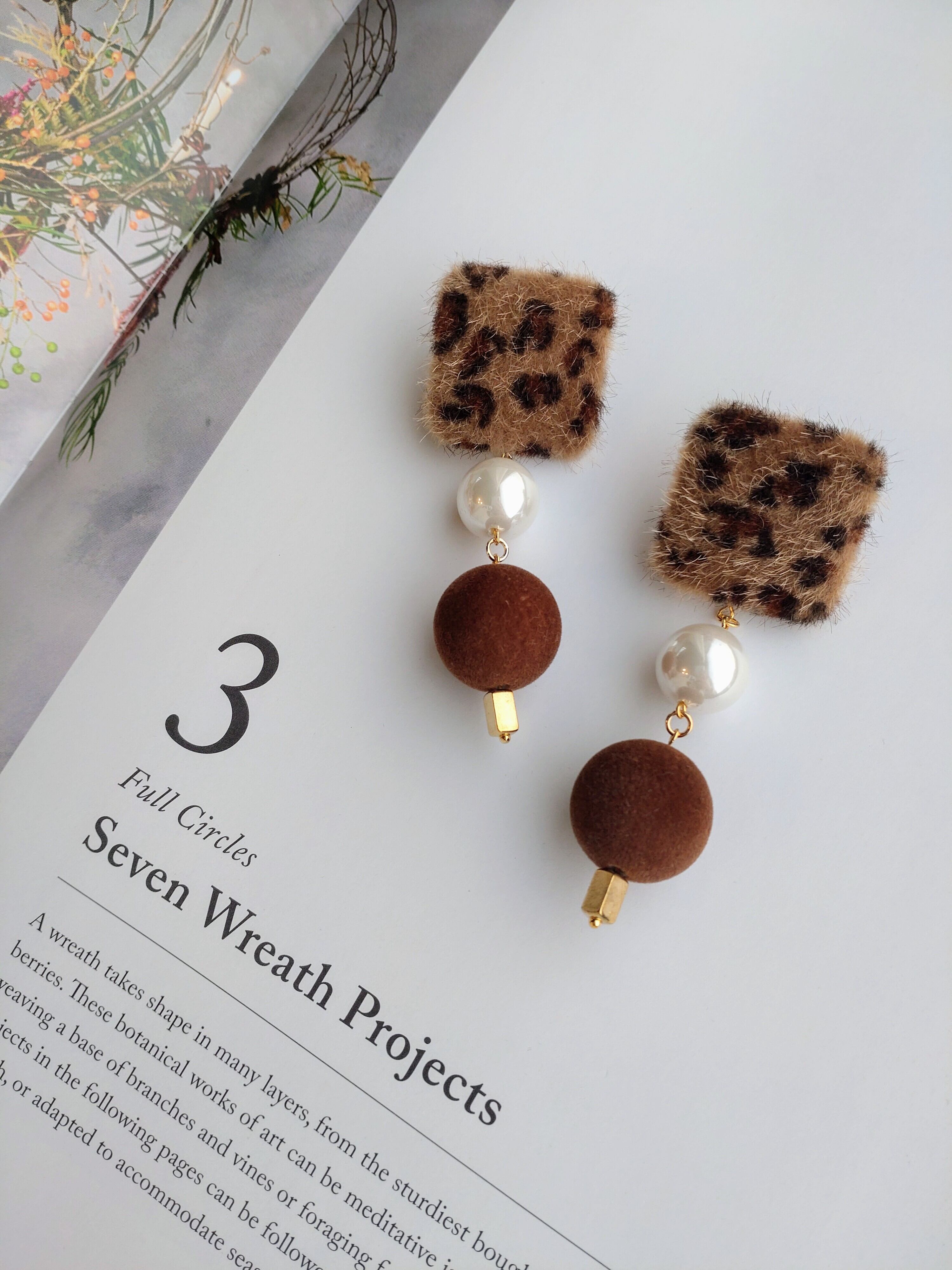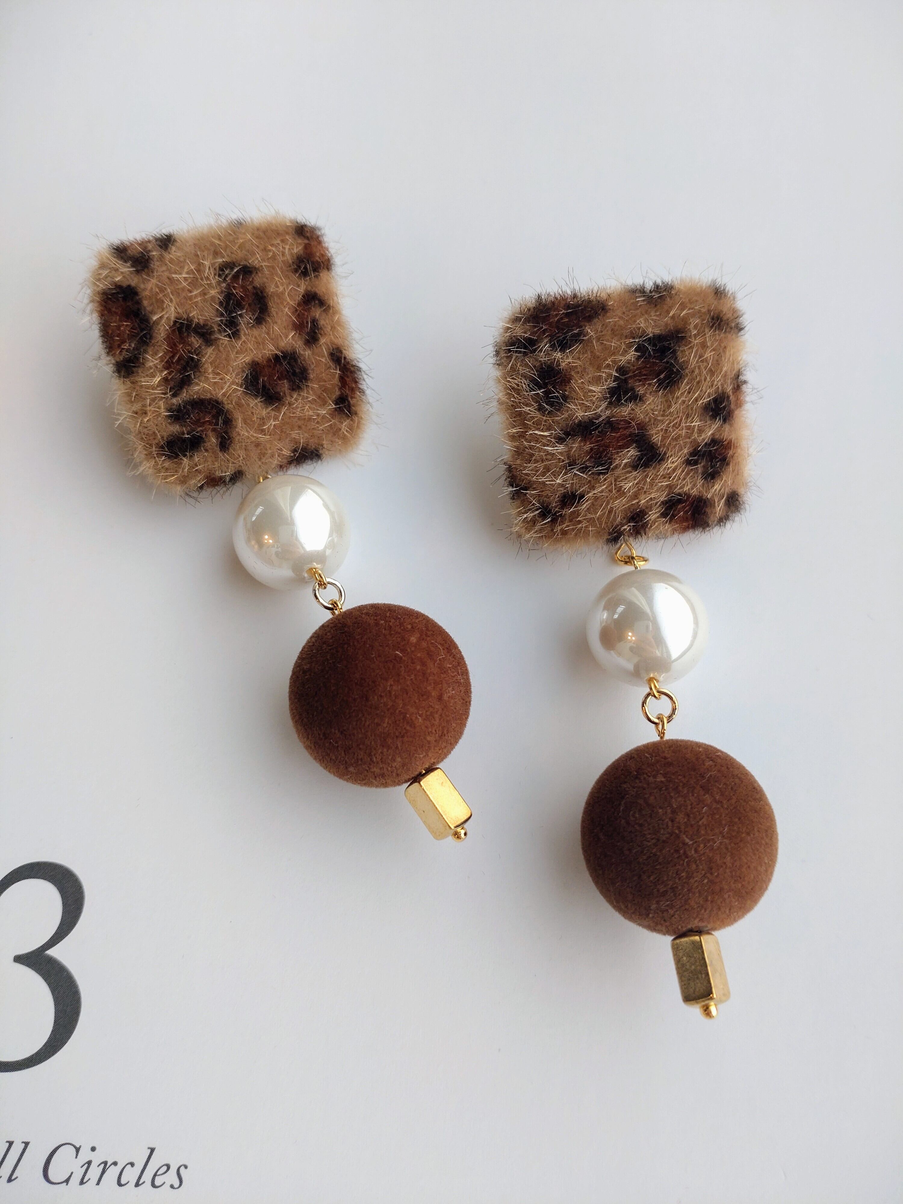 ふわふわのレオパードカボションを使った冬仕立てのピアスです♡