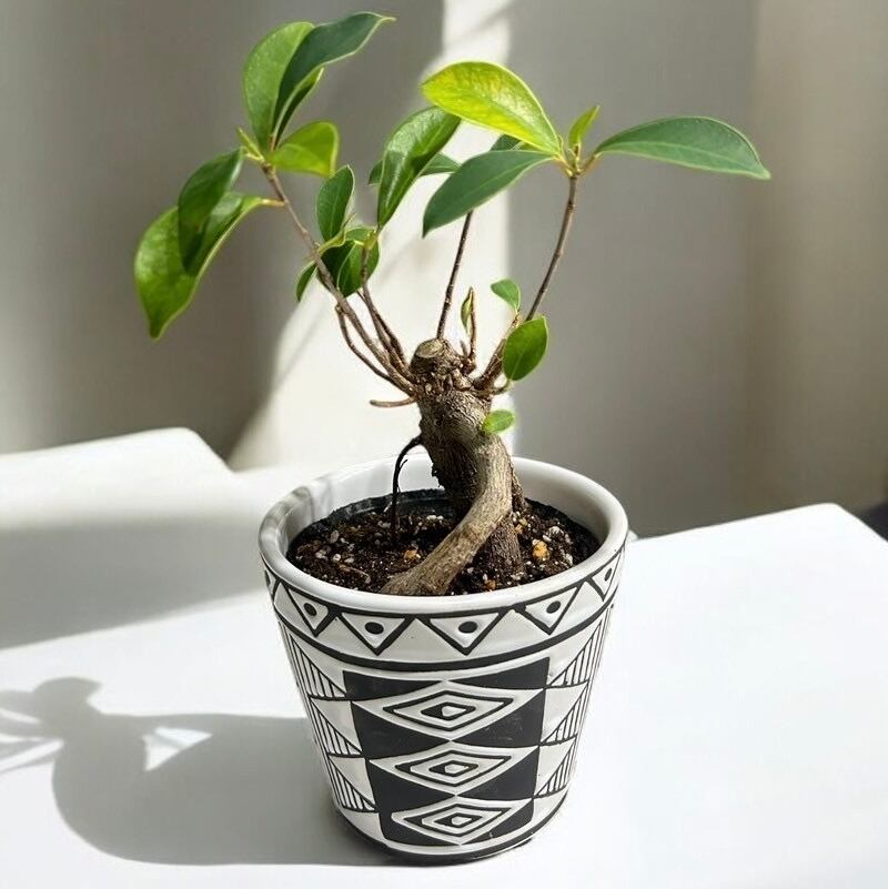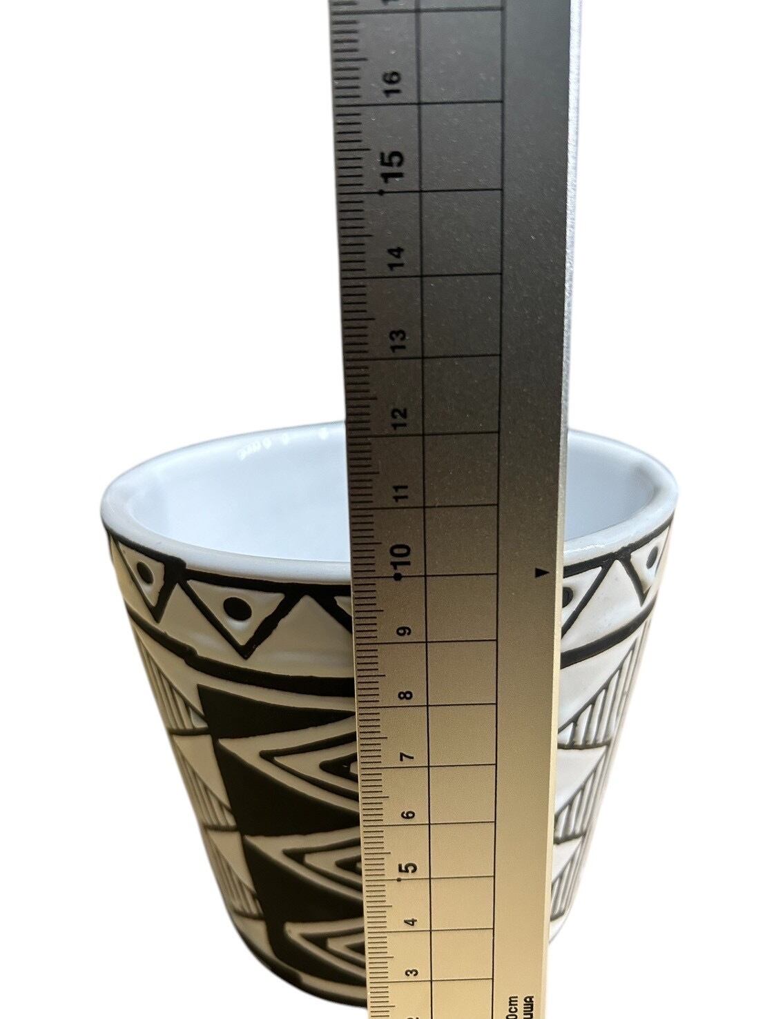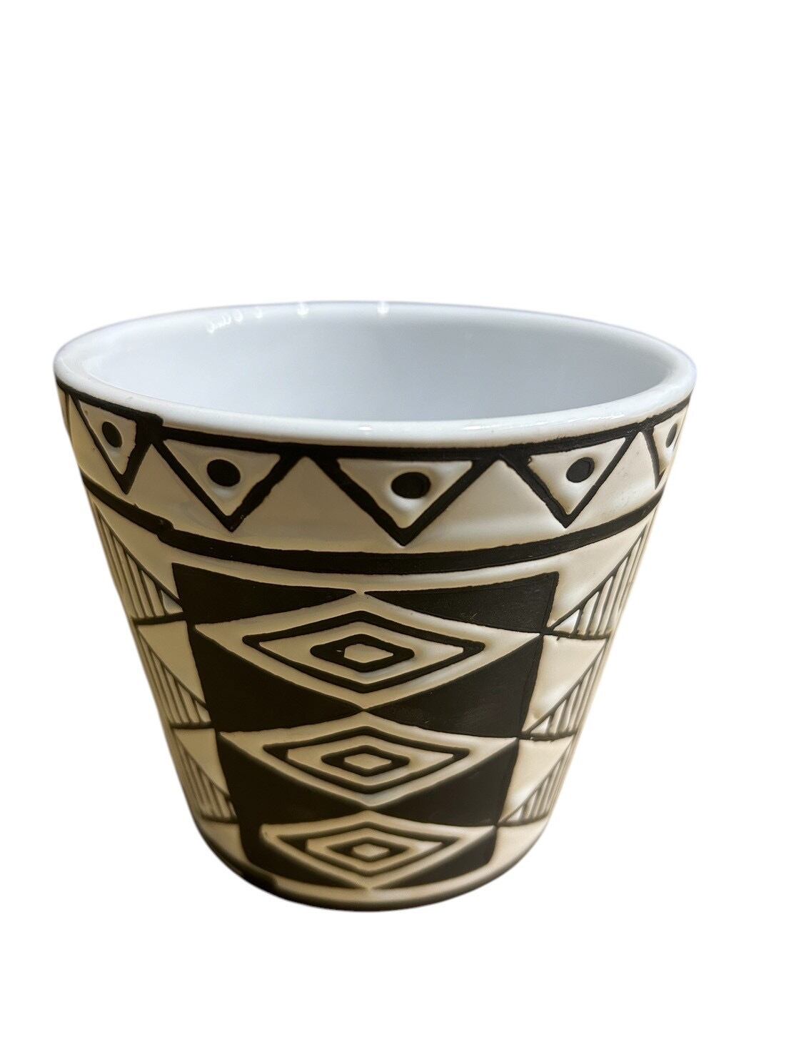 白い陶器で作られた、スペードの柄が印象的なインテリアポットです。シンプルながらもスタイリッシュなデザインで、お部屋やデッキに華やかさを加えます。