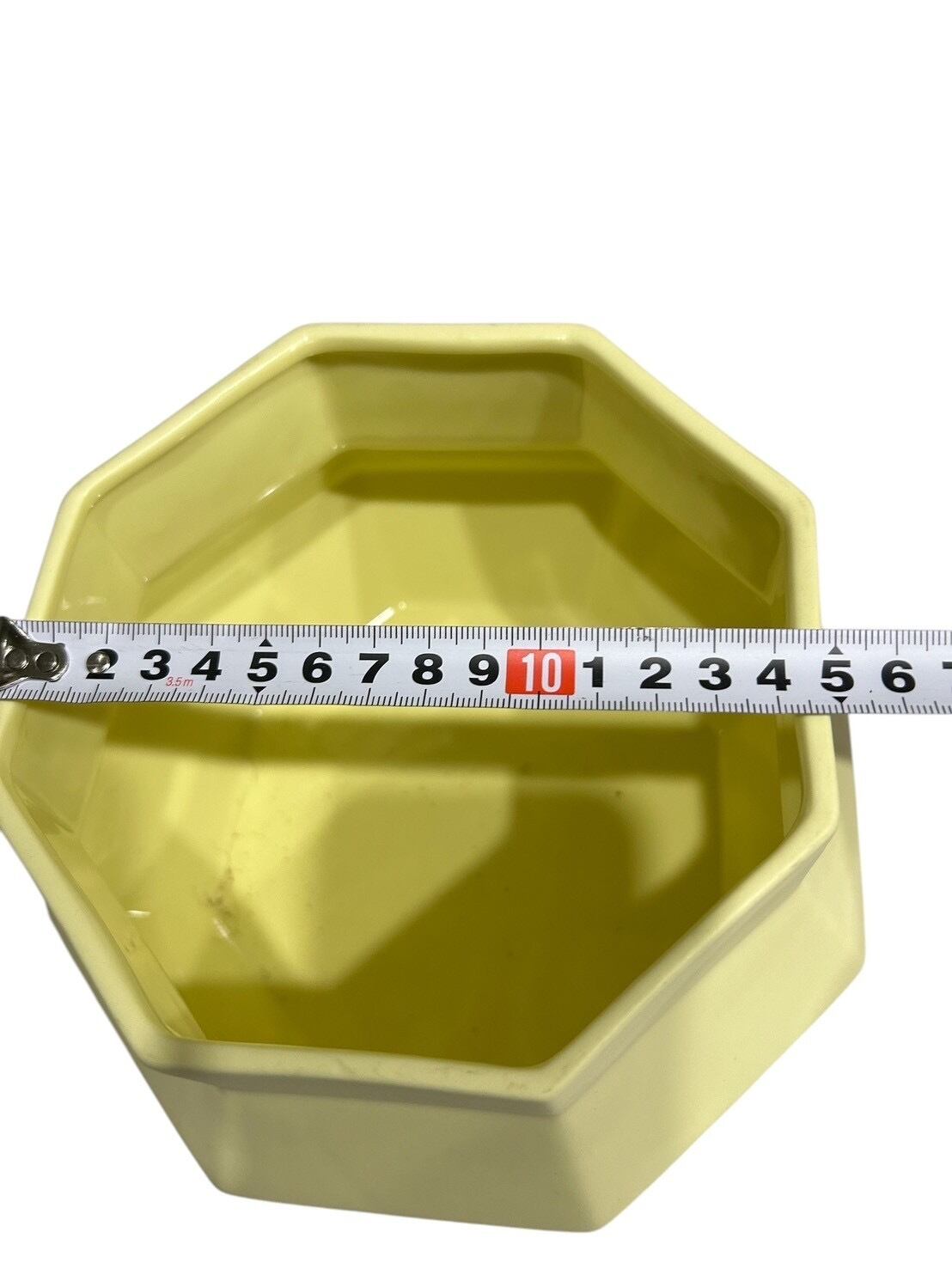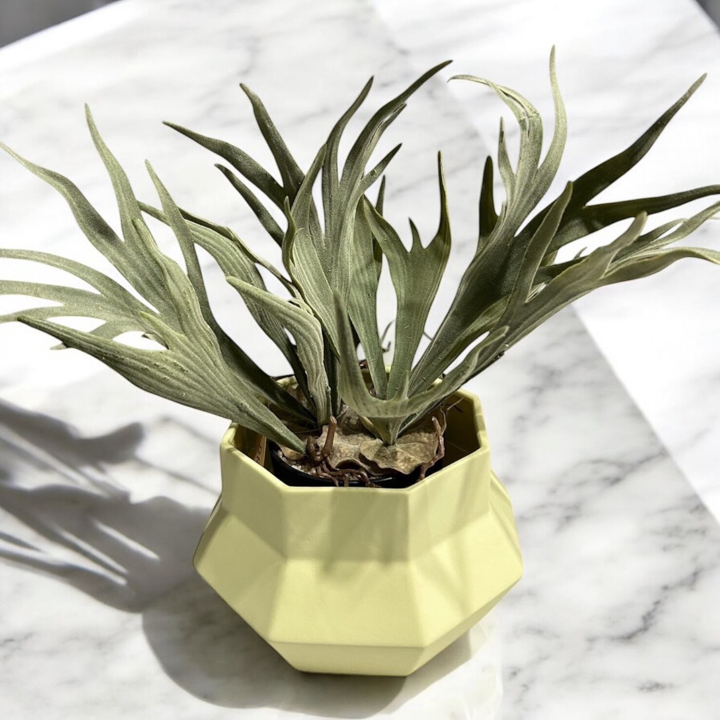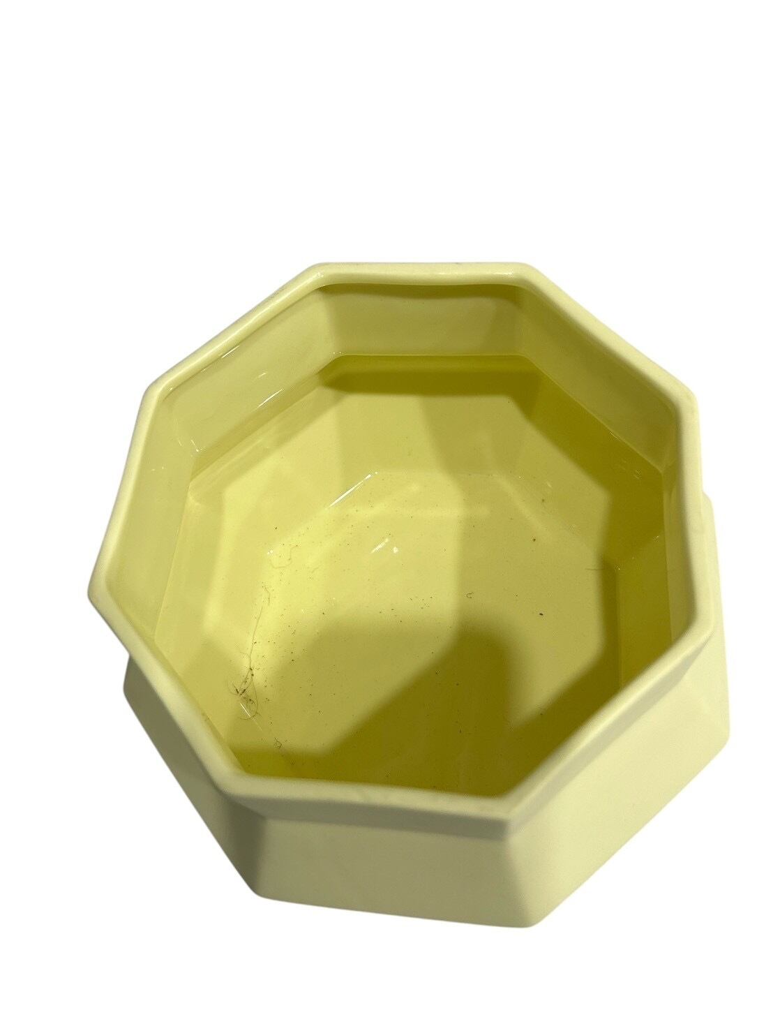 ひし形が特徴的な黄色い陶器製のインテリアポットです。