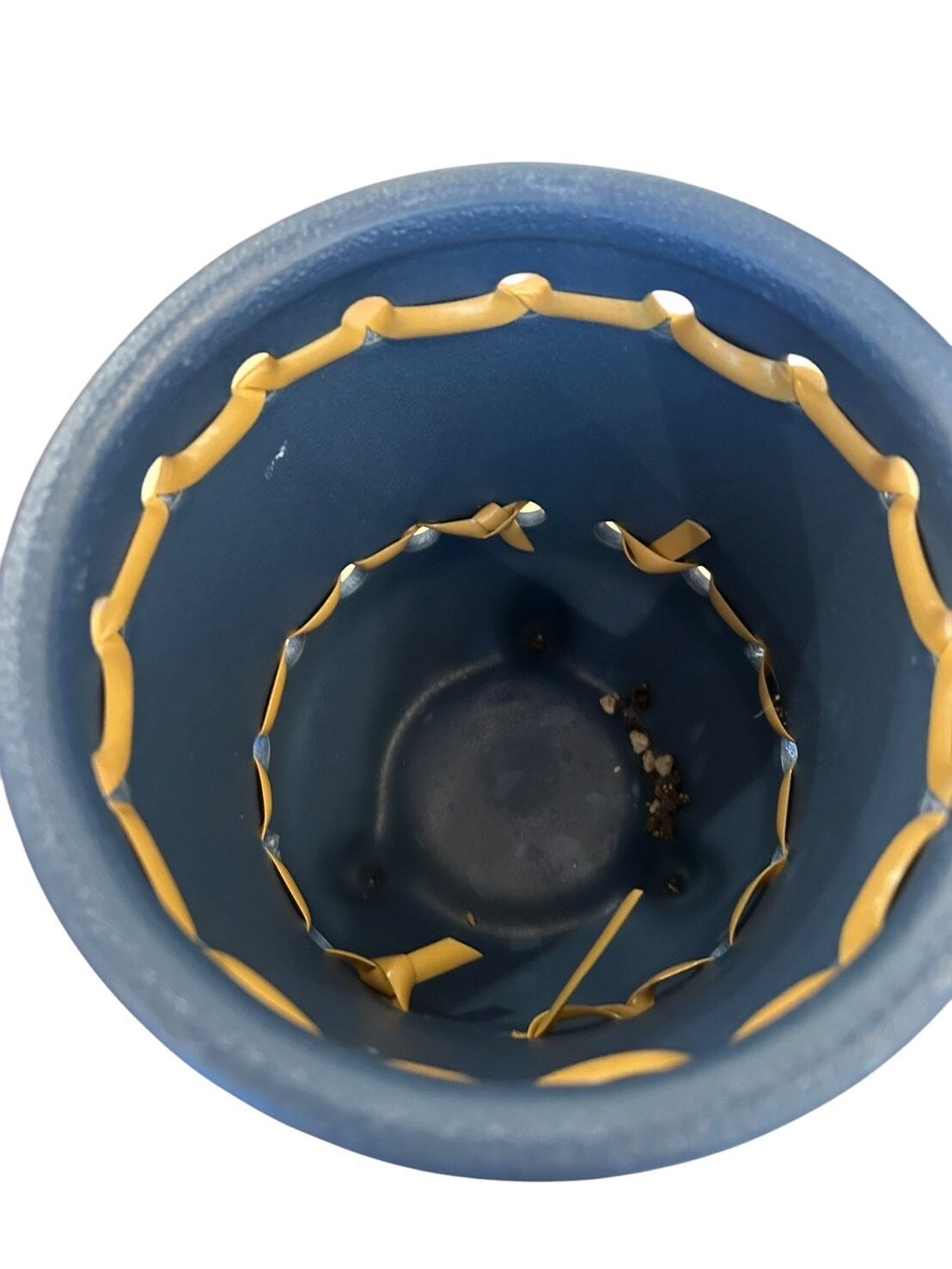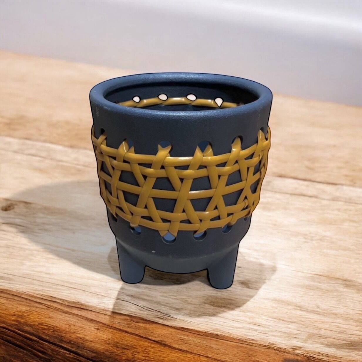 青い陶器にラタンが施されたエレガントなインテリアポットです。シンプルでありながら、ラタンの温もりが加わることで、ほっこりとした雰囲気が漂います。お好きな植物やドライフラワーを飾ることで、空間に華やかさと優雅さをプラスすることができます!