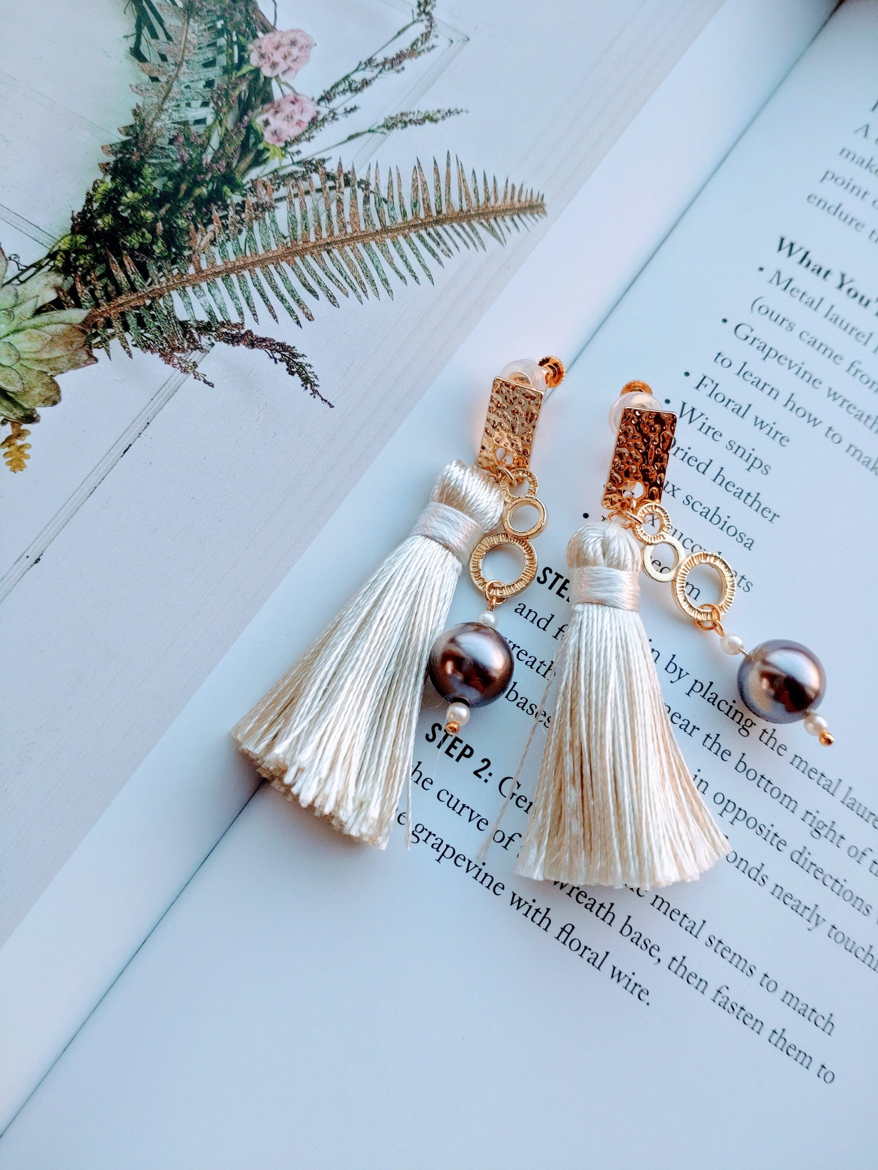 ホワイトタッセルイヤリング
