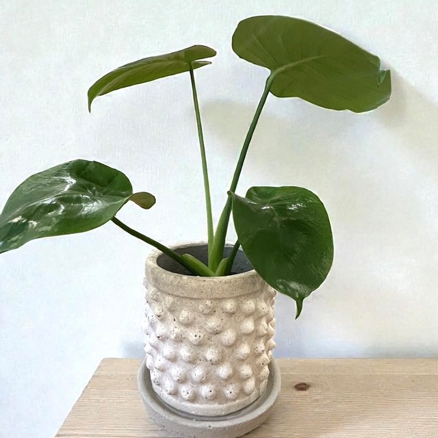 送料無料!! (⚠北海道、沖縄は別途+¥500かかります。) おしゃれなトゲトゲデザインが魅力的な白色の陶器製植木鉢です。 個性的な形状と清潔感のある白色が、さまざまなインテリアスタイルにマッチし、植えた植物を一層引き立てます。 底穴付きで水はけも優れており、植物が健やかに成長できる環境を提供します。 また、扱いやすい受け皿が付属しているため、水やり後の管理も安心です。 ※光の加減や角度によって、実物と色味が異なる場合がございますのでご了承いただければ幸いです。 また植物はイメージのために入れてあり植木鉢のみの販売ですのでご了承ください。 こちらの商品のサイズ違いもご用意しておりますのでそちらもよろしければぜひご覧ください。 【サイズ】 外寸 10cm 高さ 12cm(受け皿の高さを含む) 底穴あり 受け皿付き 素材 :セメント製 色:ベージュ